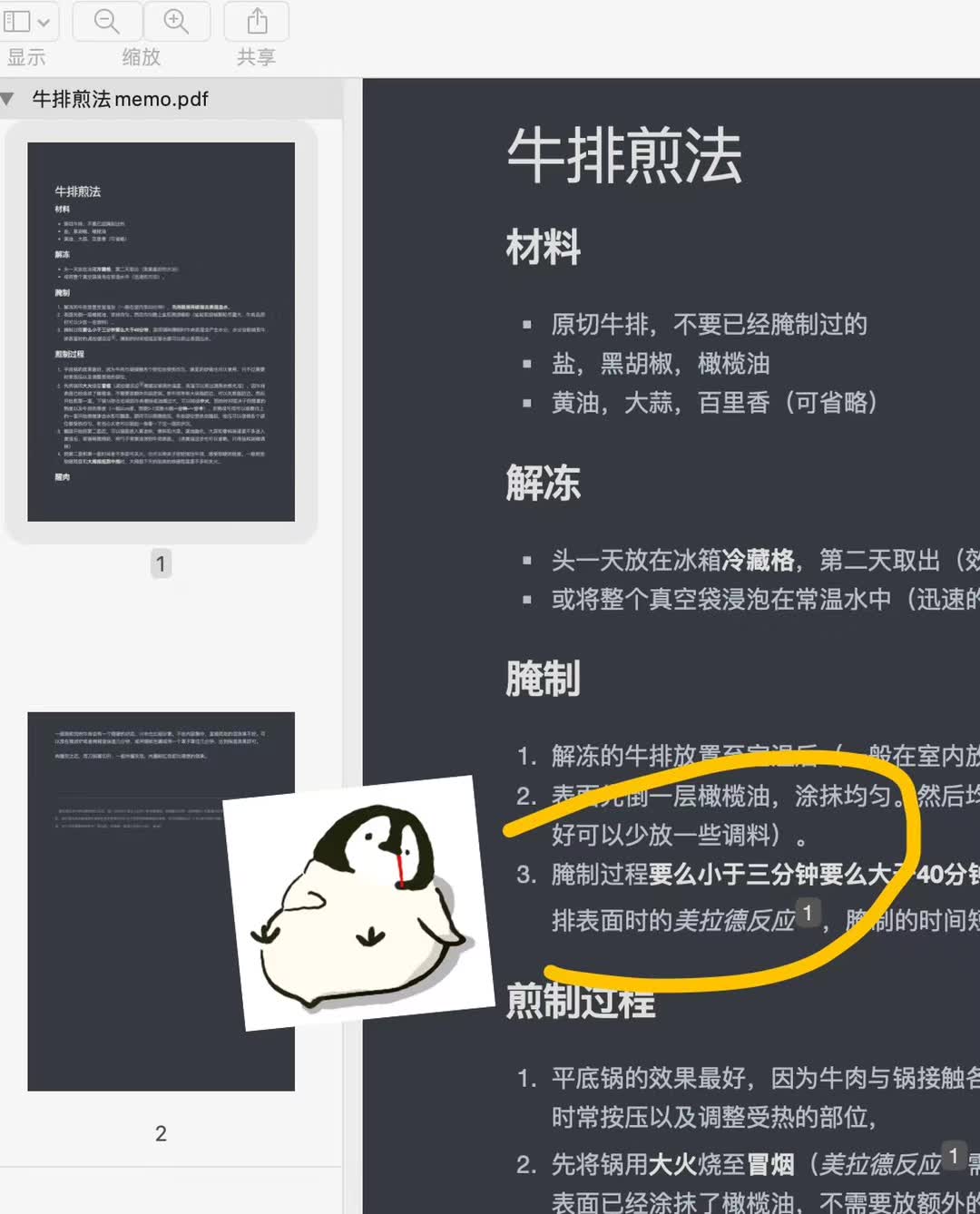 学生很极客。业余兴趣竟然是做饭买了十几波菲力、西冷、肉眼牛排,针对每个部位都做了分析,写了笔记,而且还有注脚。。。