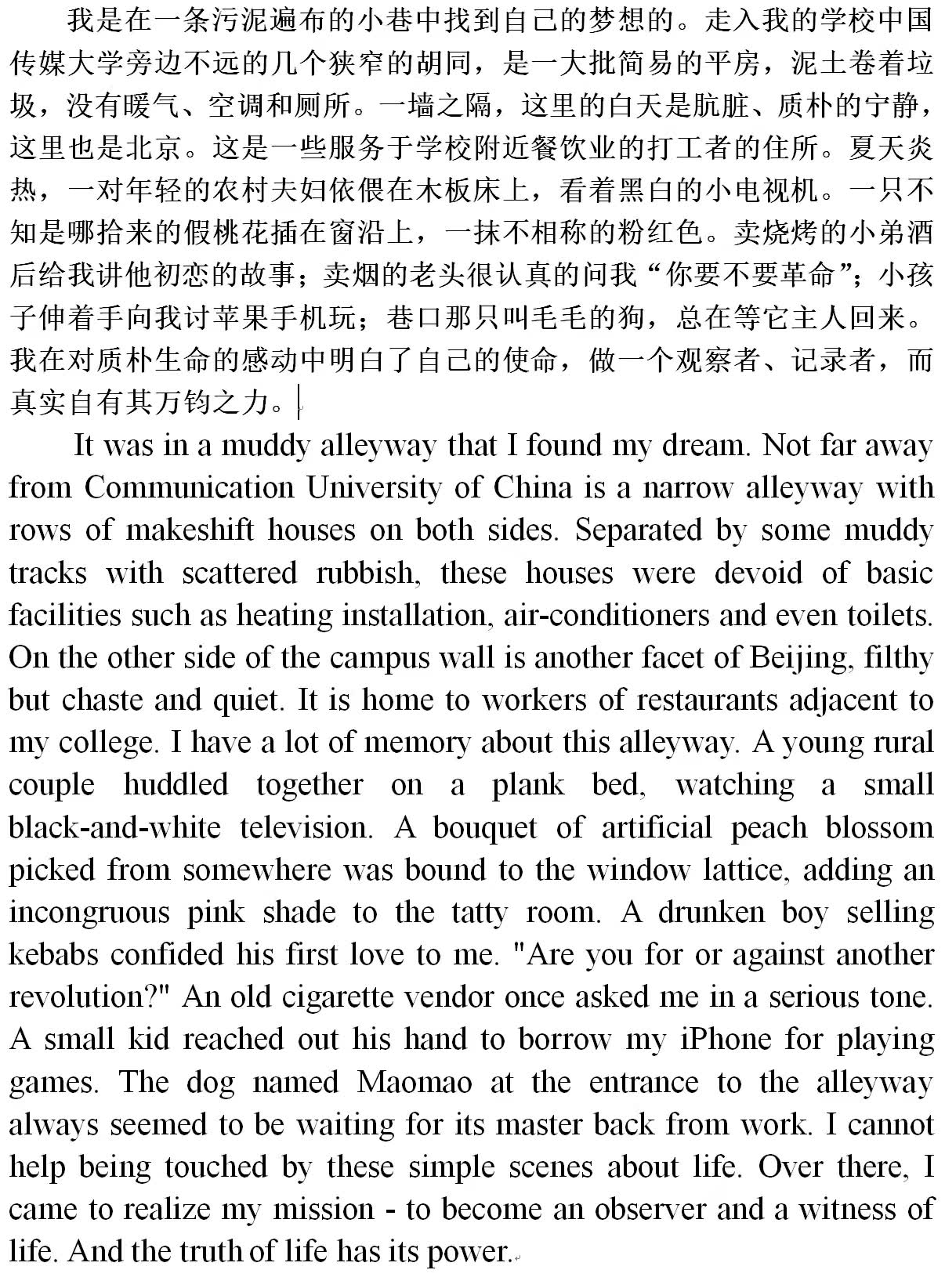 14年在申校ps里描写广院东门那位同学,工作后拍摄的第一部视频。果然文如其人,还是那么真实质朴,打动人心。
