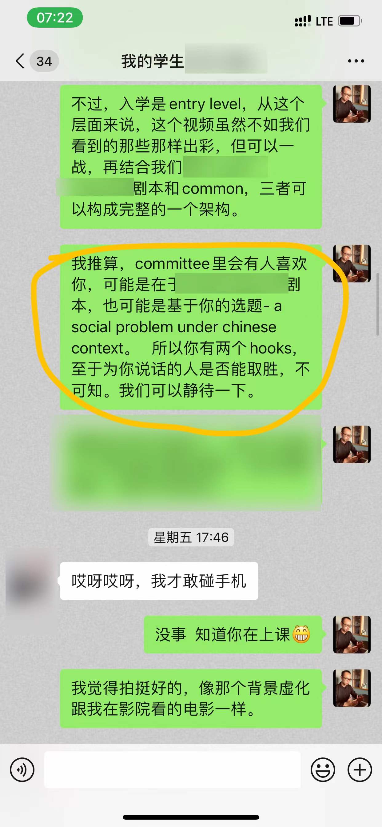 committee里会有人被惊艳到,捞起这个学生。在招生官眼里,作品集虽落于下风,但遇到学生的剧本直接可以拿来商拍,这种情况还是极少极少的。所以,我说会“招生委员会里有人捞你”。当然,从学生当时的焦虑表现来看,应该是没太信我的话