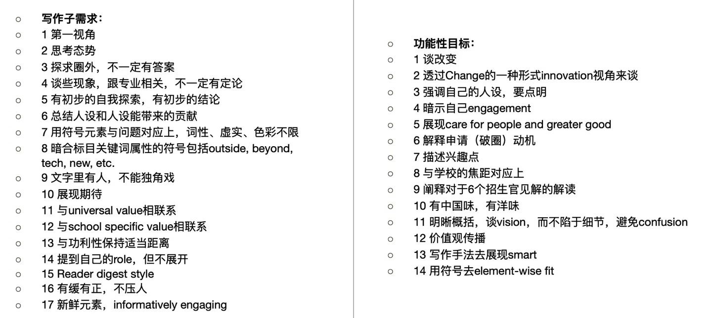 那么350 words写什么?SOP yes or no? 从350 words有限空间来看,不是detail,而是milestone + milestone + milestone => reflection故:最佳策略是:Reflective SOP + Values。
