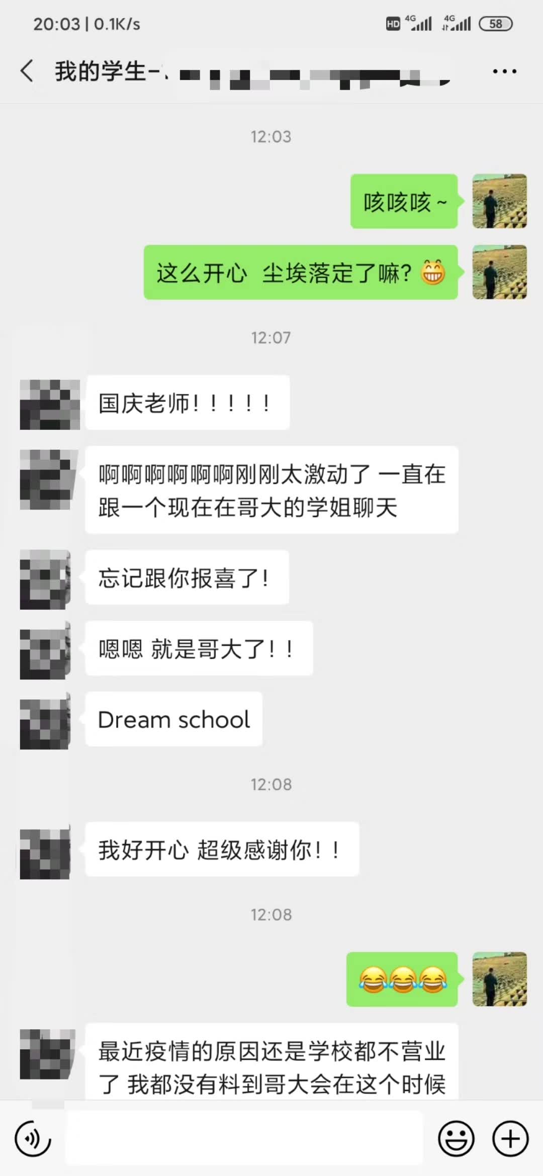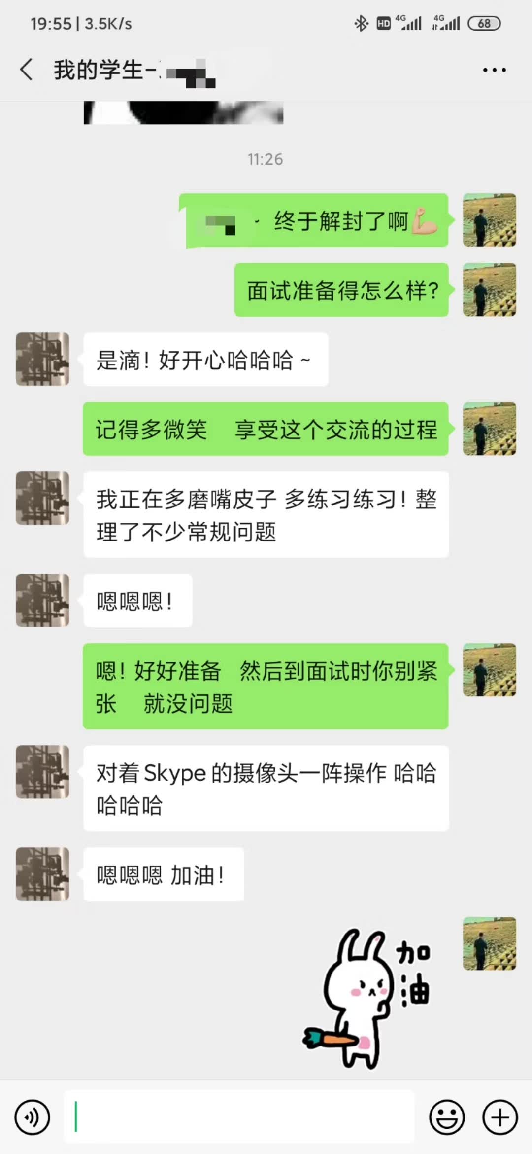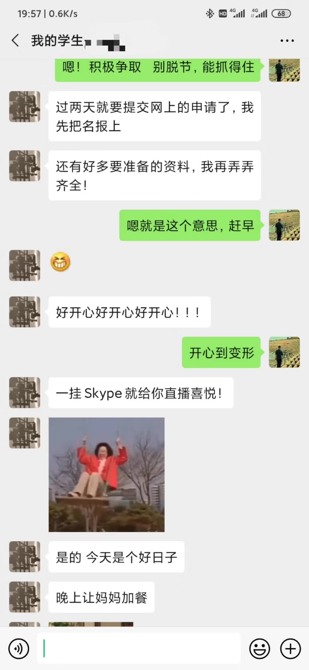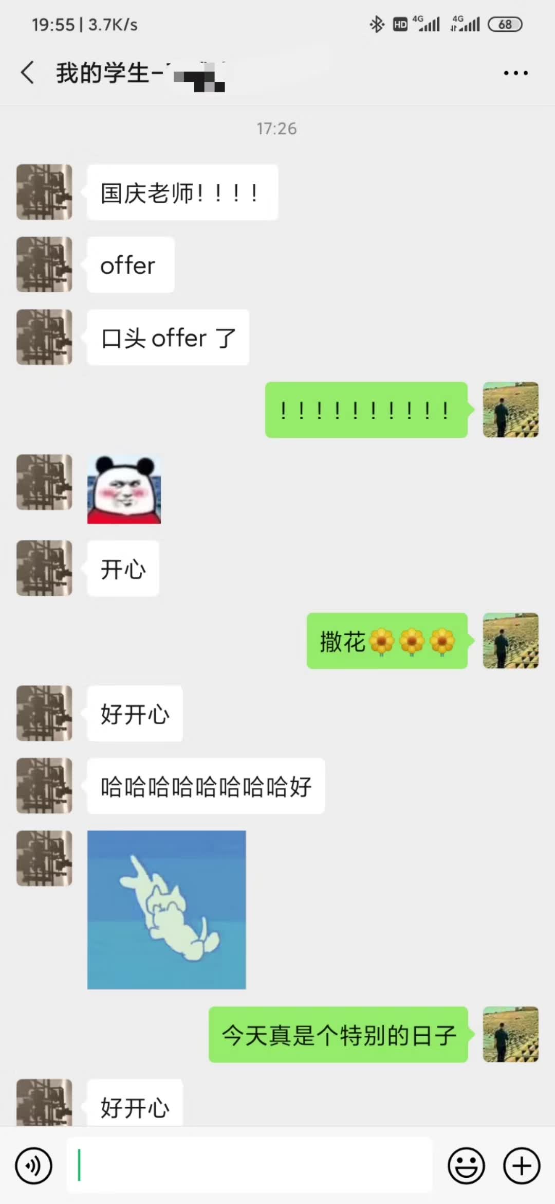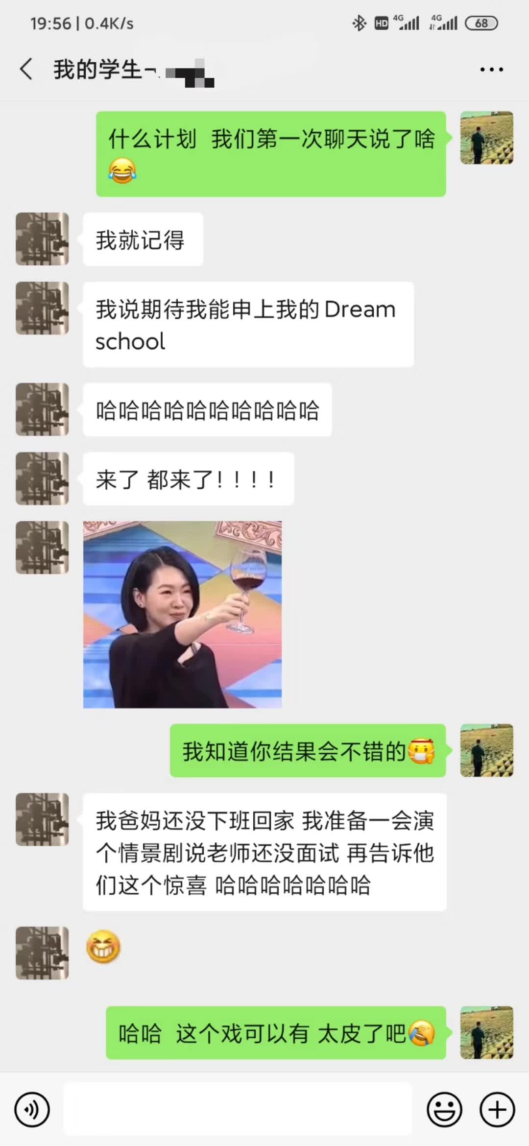 “我爸妈还没下班回家 我准备一会演个情景剧说老师还没面试 再告诉他们这个惊喜 哈哈哈哈哈