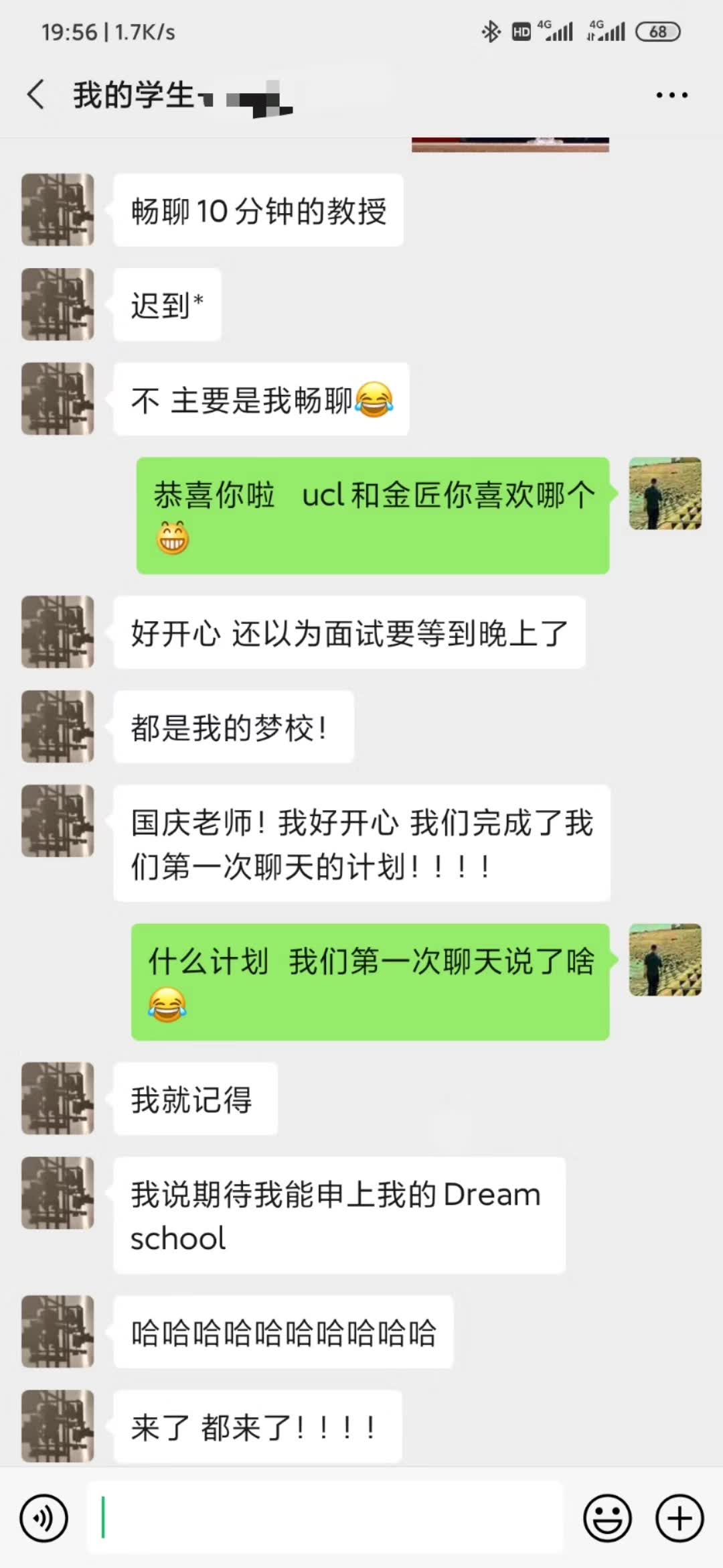 其实,早在去年夏天第一次通话的前几分钟,就猜到结果会不错。许多学生想抓住一个具体的机会,会问“我能不能录到xxx校?”。这个没人能判断,我也没法预知。我确定的是,当一个人具备了申请成功的品质时,决断、正念、自信、坚持、critical thinking等,就是“准备好了”,那么Ta的言行,都透出“准备好了”的气息,很抽象的感觉,与语言文字本身无关。我想,学校的面试也是如此,不只聆听观察,也用心去感受每个申请人。